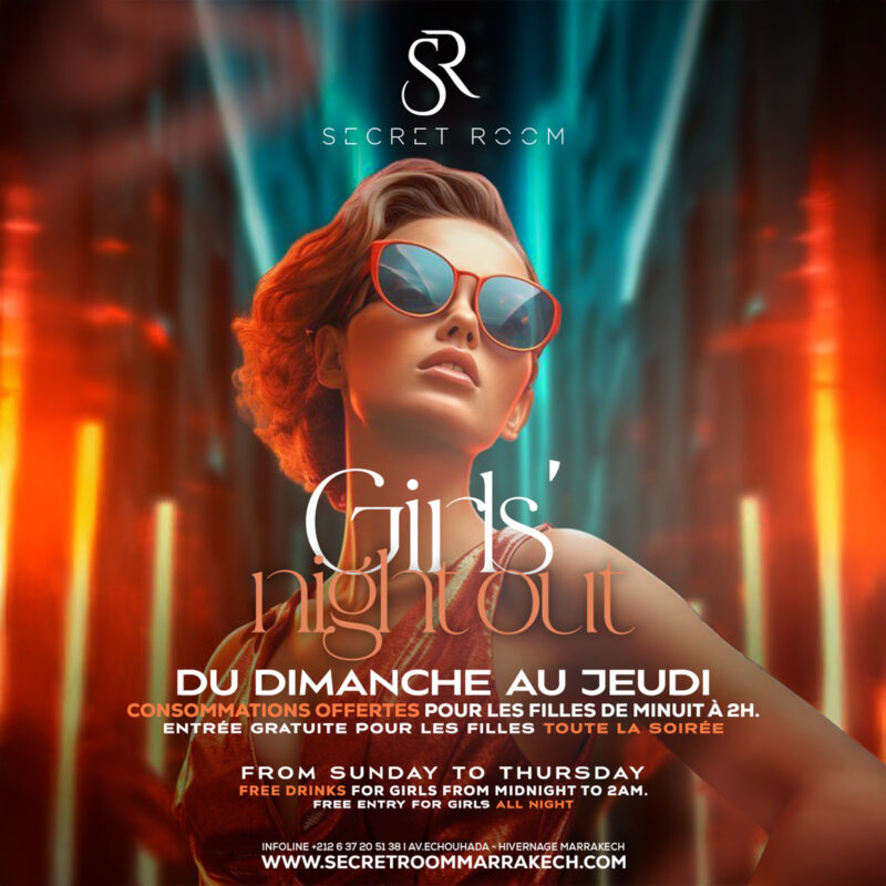 ๐ Ladies, it’s your night! ๐ Join us every Thursday at Secret Room Marrakech for a night full of glam, great music, and unforgettable vibes. ๐ถโจ